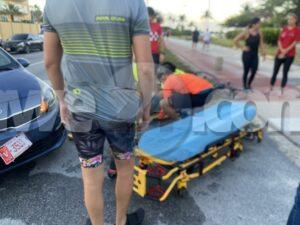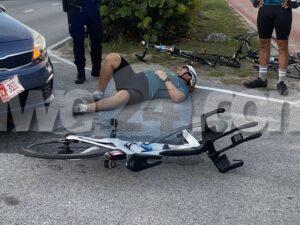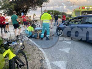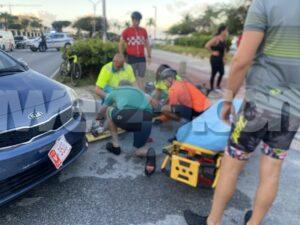 Diadomingo mainta a drenta informe di un accidente cu hende herida dilanti e Marine Verlof Centrum na Eagle Beach, mesora a dirigi tanto polis como ambulans na e sitio. Na yegada di e patruya a bin compronde cu e chauffeur turista bayendo nort a bay bira pa drenta e seccion meymey na Eagle Beach pero e chauffeur no a para pa duna preferencia na e ciclista di direccion contrario y e ciclista a bin dal net dilanti di e auto y a cay herida su mes. Na yegada di e ambulans nan a atende e victima y a transporte pa hospital.