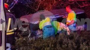 Diadomingo anochi a drenta informe di un accidente basta serio cu hende herida y pega banda di e ex-veld di Nacional pazuid di Monserat, mesora a dirigi tanto polis, ambulans como tambe bombero na e sitio. Na yegada di e patruya a bin compronde cu e chauffeur di un Nissan Cube lo no a pone atencion y a bay drenta den mondi cu e auto y a keda pega den e auto. Na yegada di e bomberonan nan a logra habri e auto pa asina saca e victima mientras personal di ambulans a atende y transporte pa hospital.