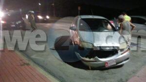 Dialuna anochi a drenta informe di un accidente na e rotonde Noord, mesora a dirigi un patruya na e sitio. Na yegada di e patruya a bin compronde cu aki ta trata di un accidente unda cu e chauffeur di un Chevrolet Aveo no a regula su velocidad ni a mantene distancia a bay dal tras di un taxi Honda. Afortunadamente ningun hende a resulta herida.