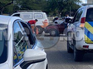 Diamars mainta un patruya pasando na Caya Ing. Roland H. Lacle a bin topa cu un accidente na e lusnan di trafico na Caya Ing. Roland H. Lacle cu Van Leeuwenhoekstraat, mesora a dirigi patruya di trafico cu a bin atende cu e accidente. A bin resulta cu turistanan den un auto di huur e chauffeur turista cu sandalia su pia a bay tras di e pedal di brake y no por a para y a bay dal riba un Nissan Sentra bayendo pabao. Afortunadamente ningun hende a resulta herida.