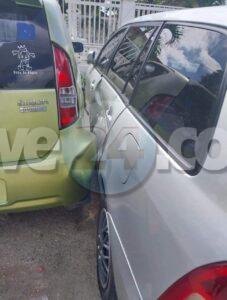 Diahuebs den oranan di madruga un vehiculo a baha caminda dal un auto staciona y manda esaki dal un otro auto staciona banda di dje y despues a core bay. E camara di seguridad a capta full e escena y tanto e auto como e number ta conosi y lo publica esaki si e chauffeur mes no haci esaki.