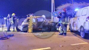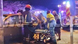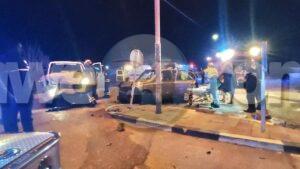 Diasabra madruga a drenta informe di un accidente cu hende herida y pega den auto na e crusada di Mondi Fierno, mesora a dirigi tanto polis, ambulans como tambe e equipo di rescate di bombero na e sitio. Na yegada di e patruya a bin compronde cu aki ta trata di un accidente frontal entre un Suzuki APV y un Nissan March unda den ambos auto tabata tin hendenan herida. Na yegada di e ambulansnan nan a atende e victimanan mientras bomberonan tabata liberando e dama cu a keda pega den e Nissan March y a yuda ambulans cu e victimanan. Ambulans a transporta e victimanan pa hospital.