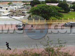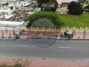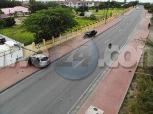 Informacion policial ricibi ta mustra cu tu cos a cuminsa ora cu a drenta melding na central di polis pa 6.12 di diadomingo mainta cu tin un accidente net dilanti di Imeldahof na Noord, mesora a dirigi un patruya na e sitio. Na yegada di e patruya a bin compronde cu e personanan cu tabata den e auto a core bay nort na pia. Informacionnan extra oficial a indica cu ambos auto tabata direccion nort y tabata tin tiramento cu arma di candela saliendo for di e auto preto unda un persona den e auto shinishi a ser alcansa y e auto a perde control y a accidenta mientras e auto preto tambe a bay dal riba nan. Den esaki esnan den e auto a core bay nort y a haya un lift pa hospital den un auto Kia Rio shinishi cual number ta conosi na polis mientras un otro auto tambe a duna e otro 2 persona un lift pa hospital debi na e lesionnan recibi na e accidente. Despues a resulta cu e incidente aki a bay mas leu cu un simpel accidente di auto. E ora ey numa polis a ricibi informe di cu 4 persona a yega na hospital di cual 2 di nan cu herida di bala y a dirigi patruya na e sitio. Unabes cu un di e victimanan a mira polis na hospital ela core sali for di e porta dilanti e hospital huy bay den un posibel Nissan March. Na e sitio di accidente berdad ora cu patruya a yega, a topa cu dos auto cu tabata practicamente total loss y daño material na palonan di luz tambe unda wayanan di coriente tambe tabata colga y spart chispanan di candela. Na hospital e dos di nan cu tabata herida di bala a declara kende ta esnan cu a tira riba dje y cu tin di haber cu e accidente mes. Mesora a activa e investigadornan tecnico forensyco pa asisti na e sitio di accidente. Ademas recherchenan di distrito 2 (Shaba) pa bay Hospital pa tuma mas informacion for di e personanan herida. Recherchenan ta bezig pa investiga kende tabata esnan cu arma di candela den nan poder y a uza esaki. Manera cu tabata di spera no a haya e arma di candela, cu nan a deshaci di dje prome cu Polis a yega y prome cu nan a yega hospital. Ta buscando tambe pa haya sa kende tabata complice di nan den e transporte (e Kia Rio grijs shinishi) pa hospital pa mira si nan sa algo di e arma di candela.