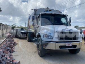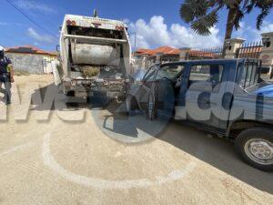 Diahuebs mainta a drenta informe di un accidente cu hende herida na Edisonstraat, mesora a dirigi un patruya na e sitio. Na yegada di e patruya a bin compronde cu aki ta trata di un accidente entre un truck di Serlimar y un pick-up unda cu e chauffeur di e truck tabata reverse poniendo atencion na e palo di lus na e banda robes lagando afo e pick-up para su tras. Ela reverse dal e pick-up pushe casi 6 meter atras. Afortunadamente ningun hende a resulta herida.