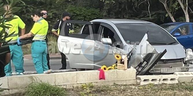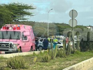 Diamars atardi a drenta informe di un accidente cu hende herida pabao di rotonde Mahuma riba e Green Corridor, mesora a dirigi tanto polis como ambulans na e sitio. Na yegada di e patruya a bin compronde cu e chauffeur di e Honda Fit coriendo cu velocidad halto a perde control pabao di e rotonde Mahuma y a bay dal riba e muraya di e median. Debi na e fuerte impacto aki un pasahero den e auto a resulta herida. Na yegada di e ambulans nan a atende e victima.