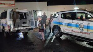 Diadomingo anochi a drenta informe di cu un dama lo a dal den un pilon den Caya Grandi, e dama a sigui core te fin di caya y a bati alarma pa seguro por wak e danjo. Mesora a dirigi patruya tambe na e sitio. Na yegada di patruya na e sitio por a constata cu e dama chauffeur tabata bou influencia. No a keda polis nada otro pa hasi pero pa detene e dama pa a core bou influencia. Vehiculo di transporte a bini na e sitio y a transporta e dama deteni pa warda di polis.