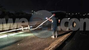 Dialuna madruga a drenta informe di un accidente na e rotonde Sasaki, mesora a dirigi un patruya na e sitio. Na yegada di e patruya a bin compronde cu aki ta trata di un accidente unda cu un chauffeur hulandes europeo bao influencia a bay dal riba e rotonde y un palo di lus. Na prome instante e chauffeur a purba gaña cu ta su amigo tabata tras di stuur pero testigonan a alerta polis cu ta e mes tabata na stuur. Polis a duna e chauffeur un “rij-verbod”. Afortunadamente ningun hende a resulta herida.