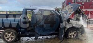 Diahuebs mainta a drenta informe di cu un pick-up lo a pega na candela dilanti Sividivi Restaurant, mesora a dirigi tanto polis como bombero na e sitio. Na yegada di e patruya a bin compronde cu e pick-up tabata faya y e chauffeur a para banda di caminda paga e motor y a bay start esaki y ela pega na candela. Na yegada di bombero a paga e candela.