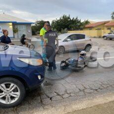 Diahuebs mainta a drenta informe di un accidente cu hendenan herida na Ponton, mesora a dirigi tanto polis como ambulans na e sitio. Na yegada di e patruya a bin compronde cu aki ta trata di un accidente entre 4 auto. Ta trata di un Honda Fit biniendo for di pabao y a bay subi e crusada pa bay nort sin a duna preferencia na e Kia Rio hatchback biniendo for di zuid, e Kia Rio mester a baha for di caminda pa evita un impacto mas fuerte pero a baha caminda bay dal un auto Toyota Corolla cual tabata tin un wiel riba blokki pusha esaki mandi dilanti bay dal un Honda Fit staciona dilanti e Corolla causando basta daño material. Tanto e dama chauffeur den e prome Honda cu subi sali dilanti como e chauffeur di e Kia Rio a resulta herida y a ser atendi na e sitio mes pa ambulans cu a presenta mesora.