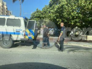 Dialuna mainta security di hotelnan a nota presencia di un adicto ambulante causando molester na e hotelnan, mesora a dirigi un patruya na e sitio. Na yegada di e patruya un di e security guardnan a señala polis e conocido adicto ambulante L. cu tabata na Paseo Herencia mesora polis a acerke y a detene. Nan a hib’e warda di polis unda eynan polisnan atende cun’e pa su comportacion cu turistanan banda di e hotelnan.
