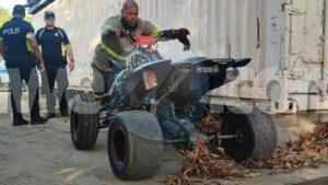 Dialuna atardi a drenta informe di cu tin sonido di racemento na Rooi Lamoenchi, mesora a dirigi un patruya na e sitio. Na yegada di e patruya a nota 2 quadracer y un scrambler, mesora a para nan y a atende cu nan. Polis a confisca e vehiculonan aki pasobra nan lo no tin papelnan di nan na ordo. Mientras cu a spera riba e takelwagen e hobennan a bisa cu nan no tabata core riba caminda publico y cu esaki ta nan diberticion riba tereno priva, ademas a bisa cu un di e quadracernan tin su papel regla na ordo no mas cu e no tin e cun’e. Un rato despues e mayornan di e hobennan a presenta cu e papelnan di un di e quadracernan na ordo y polis a debolbe nan e quadracer ey pero e otronan si nan a bay cun’e den beslag.