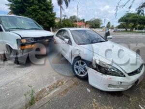 Diamars merdia a drent informe di un accidente cu hende herida na e crusada Beatrixstraat Adriaan Lacle blvd., mesora a dirigi tanto polis como ambulans na e sitio. Na yegada di e patruya a bin compronde cu aki ta trata di un accidente pa falta di preferencia unda e Honda biniendo for di pariba den Beatrixstraat no a calcula bon e velocidad y distancia y a sali dilanti e Chevrolet Van bayendo zuid den A. Lacle blvd. Debi na e impacto na e banda di e pasahero sinta na man drechi den e Honda e pasahero tabata keda di dolor na su nek. Na yegada di e ambulans nan a atende e victima na e sitio mes.