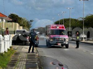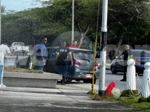 Diamars atardi a drenta informe di un accidente cu hende herida dilanti Coral Pyramide, mesora a dirigi tanto polis como ambulans na e sitio. Na yegada di e patruya a bin compronde cu aki ta trata di un accidente unda un Toyota Agya biniendo cu velocidad for di pabao y un Kia Rio bayendo pabao pero e Agya tabata mucho na banda robes y a pasa dal e spiel y raspa e Kia Rio den banda y a sigui bay mas na man robes subi acera bay dal riba un baki mata. Na yegada di e ambulans afortunadamente no tabata tin ningun victima herida pero si spanta. E personanan den ambos auto a ser controla pa e personal di ambulans na e sitio mes.