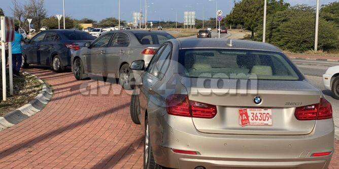 Diahuebs mainta a sosode un accidente na e rotonde dilanti di airport, e prome un auto a sali dilanti e otro cu tabata riba e rotonde caba y a bay dal e den banda. Debi na e accidente aki un trekker a bay subi e caminda y a bay rasca un otro tambe subiendo e rotonde. Afortunadamente no tabata tin ningun hende herida.