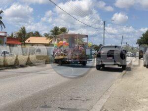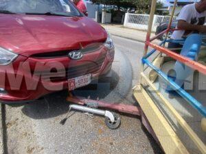 Diabierna merdia a drenta informe di un accidente na Santa Cruz, mesora a dirigi un patruya na e sitio. Na yegada di e patruya a bin compronde cu aki ta trata di un accidente unda un carousel riba trailer a los for di patras di un van truck y a bay dal riba un vehiculo di direccion contrario. Afortunadamente ningun hende a resulta herida.