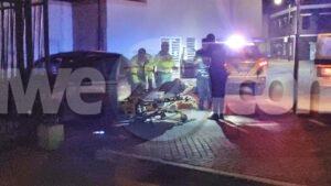 Diadomingo madruga a drenta informe di un accidente cu impacto basta fuerte patras di corte y tin un dama herida cu no ta reacciona, mesora a dirigi tanto polis como ambulans na e sitio. Na yegada di e patruya a bin compronde cu aki ta trata di un accidente unda cu un Nissan March biniendo for di pabao mientras e pareha aden tabata pleitando y a sigui straight bay dal riba e hekwerk di corte. E impacto tabata fuerte y e dama no tabata reacciona segun testigonan e homber chauffeur a core bay laga e dama atras mal herida den e auto. Na yegada di e ambulans nan a atende e dama y despues transporte pa hospital.