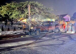 Diasabra anochi a drenta informe di un accidente cu hende herida na Caya Papa San Juan Pablo ll, mesora a dirigi tanto polis como ambulans na e sitio. Na yegada di e patruya a bin compronde cu aki ta trata di un accidente unda un chauffeur burachi biniendo for di Caya Juancho Kock a bay bira na man robes y a tuma e birada mucho grandi y a bay dal un palo di lus kibra y coriente a bay pa un gran parti di Dakota. Debi na e impacto e chauffeur a resulta herida, na yegada di e ambulans nan a atende e victima y a transporte pa hospital. Polis a sera e caminda pasobra e palo di lus a kibra na mitar y e wayanan di coriente a keda colga den caminda.