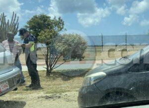 Dialuna merdia un patruya a pasando den Camacuri a bin topa cu un accidente, mesora a baha atende. A bin resulta cu un chauffeur no a regula su velocidad ni a mantene distancia a bay dal tras di e auto su dilanti. Afortunadamente ningun hende a resulta herida.