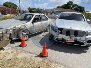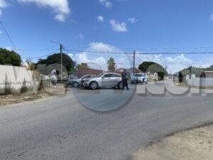 Diamars mainta a drenta informe di un accidente cu hende herida na Kamerlingh Onnesstraat, mesora a dirigi tanto polis como ambulans na e sitio. Na yegada di e patruya a bin compronde cu aki ta trata di un accidente unda un chauffeur coriendo cu un Nissan Sentra bieuw sin number y sin documento no a duna preferencia a causa un accidente cu un Mercedes Benz nobis nobis causando hopi daño y tambe cu un dama herida den e Mercedes Benz. E chauffeur irresponsabel aki a cana bay zuid cu un dama acompaña bandonando e sitio di accidente. Na yegada di e ambulans nan a atende e dama pasahero cu a ricibi sla na su cabes y despues di un revision a haya cu lo ta mihor hib’e hospital pa un revision mas extenso. Polis a confisca e Nissan Sentra aki.