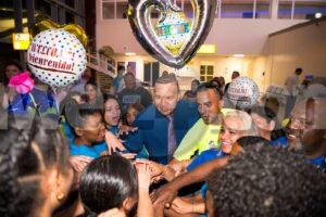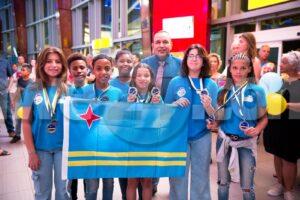 ORANJESTAD: Diadomingo anochi, Minister Endy Croes tabata na Aeropuerto Internacional Reina Beatrix pa yegada di delegacion di Aruba cu regresa di Curaçao cu e titulo di campeon den trefbal di Weganan Interinsular 2023. Ekipo di Colegio Felipe B. Tromp a derota Curaçao 3-2 den un final emocionante. Cu hopi alegria y entusiasmo e alumnonan di Colegio Felipe B. Tromp a ordo ricibi door di nan mayor-, amigo-, amistad- y maestronan di scol cu tabata warda nan cu blaas y flor. Despues di shete aña Weganan Interinsular entre escolnan di Aruba, Boneiro y Curaçao ta tumando luga bek. Minister Endy Croes a indica cu hunto cu colega Minister di Enseñansa, Ciencia, Cultura y Deporte di Curaçao Sithree van Heydoorn y Diputado di Infrastructura y Deporte di Boneiro James Kroon a traha hopi duro pa cuminsa cu Weganan Interinsular bek y aña pasa den e luna di september a firma un acuerdo cu hunto lo trece Weganan Escolar Interinsular bek.