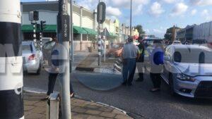 Diahuebs atardi a drenta informe di un accdente cu impacto basta fuerte banda di Peanuts Restaurant, mesora a dirigi un patruya na e sitio. Na yegada di e patruya a bin compronde cu aki ta trata di un accidente pa falta di preferencia. Afortunadamente ningun hende a resulta herida.