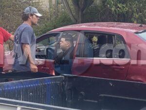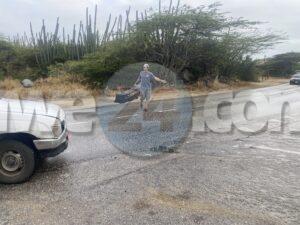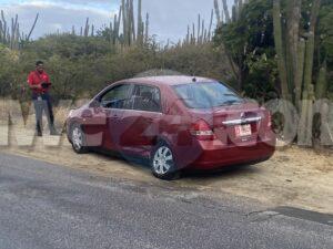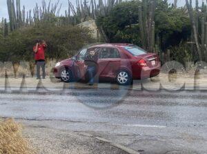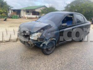 Diasabra atardi a drenta informe di un accidente na Catiri, mesora a dirigi un patruya na e sitio. Na yegada di e patruya testigonan a bisa polis cu un di esnan envolvi den e accidente kier a bandona e sitio. Polis mesora a bay atende cun’e y a detene. Locual a sosode ta cu e Nissan Tiida biniendo for di Soledad a subi caminda muha y e tire tabata blo slip tardando asina su subimento na e crusada pa e bay nort y e tardamento aki a pone cu e Toyota Tercel biniendo di nort a bay dal riba e Tiida. Aunke e impacto tabata fuerte toch afortunadamente ningun hende a resulta herida. Na un dado momento e chauffeur di e Tercel a coy e bumper di e Tercel hink’e den su auto y kier a core bay ya cu e ta indocumenta pero polis a yega prome cu ela logra bay. Polis a detene e chauffeur. Na casi e mesun momento cu e accidente aki a sosode e stagnacion di trafico y e caminda muha a pone un otro accidente sosode, por lesa mas di esaki den un otro informe.