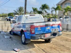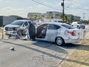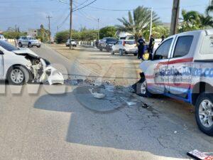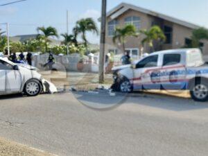 Dialuna atardi a drenta informe di un accidente basta fuerte na Rooi Santo, mesora a dirigi tanto polis como tambe 2 ambulans na e sitio. Na yegada di e patruya a bin compronde cu e chauffeur di e Nissan Versa bayendo nort a bay pasa un bus pero net un Chevrolet Pick-up tabata bini di direccion contrario. E chauffeur di e pick-up a nota e maniobra ey y a purba kita y hasta a baha caminda pa evita e impacto pero asina mes nan a dal otro frontalmente. Ambos chauffeur a resulata levemente herida y a ser atendi na e sitio di accidente mes. Takelwagen mester a kita ambos vehiculo for di caminda.