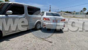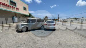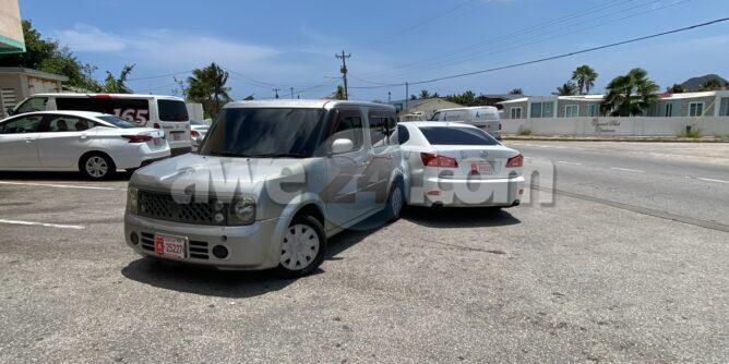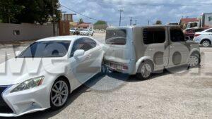 Diaranson merdia a drenta informe di un accidente dilanti Bo Wah Supermarket, mesora a dirigi un patruya na e sitio. Na yegada di e patruya a bin compronde cu aki ta trata di un accidente unda un Nissan Cube a hala bay patras dal un Lexus pasando su tras. Afortunadamente ningun hende a resulta herida.