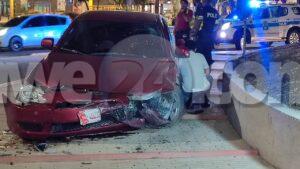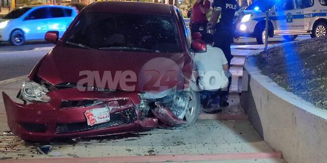 Diasabra madruga birando mainta a drenta informe di un accidente na e rotonde banda di Superfood na Bubali. Na yegada di e patruya a bin compronde cu e chauffeur biniendo for di Bubali bayendo (supuestamente) trabao lo a bay dal basta duro riba e muraya di e rotonde. Debi na e impacto e chauffeur a dal su cabes y resulta herida pero no tabata desea ambulans. Polis a nota cu e chauffeur tabata influencia y ora a pidie pa supla e no por a haci esaki y polis a detene. Vehiculo di transporte a bin buske pa hibe warda di polis.