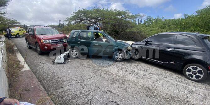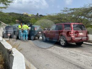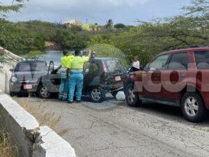 Diabierna atardi a drenta informe di un accidente cu hende herida riba e brug bieuw na Balashi, mesora a dirigi tanto polis como ambulans na e sitio. Na yegada di e patruya a bin compronde cu akibta trata di un accidente unda e dama chauffeur di e Suzuki Ignis biniendo di pabao a slip riba e caminda muha bay dal e muraya di e brug bay na man robes dal e Fiat di direccion contrario djey un Ford Escape tras di e Suzuki a brake pero asina mes a slip bay dal tras di e Ignis. Debi na e impactonan e dama chauffeur di e Ignis a resulta herida. Na yegada di e ambulans nan a atende e victima y a transporte pa hospital.