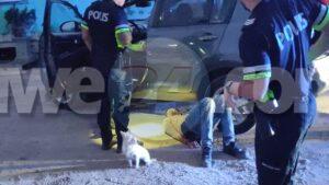 Diasabra madruga birando mainta polisnan na e warda nobo a scucha tiro ey cerca y a sali bay wak kiko tabata pasando 2 patruya cu a sali mesora a nota un auto pasando den verboden mesora nan a bay su tras cu “zwaailicht” y sirena. A start un persecucion unda e vehiculo pasando den verboden den Koningstraat a hera accidenta frontalmente riba un otro auto cual e chauffeur tabata atento y a reacciona mesora y a reverse na tempo net pa evita e impacto frontal. Mientras e auto sospechoso e Kia Sportage A51032 a bira na man robes drenta den Weststraat y polisnan a bay su tras, e vehiculo aki a pasa tur crusada sin para y tabata evadi di para pa polis gar’e, e persecucion a sigui den Driemasterstraat e sospechoso a sigui den Driemasterstraat y na e rotonde a bay den Lucianitastraat direccion pabao pasando duro riba e “verkeersplateau” y despues a bira bay nort pabao di Ban Ban Cafe. Bayendo nort a bira na man robes na un caminda cu final pa bay na e gallero y tire shop. Den e pida caminda ey ela baha for di caminda dal na un spandraad ranca un palo di lus pa asina finalmente bay para dilanti e tire repair shop. Eynan polis a logra captur’e y a detene. Polis a nota cu ora e chauffeur a ranca e spandraad e chauffeur a kap su frenta y a resulta herida, polis a pidi ambulans pa bini na e sitio. Polis a nota tambe cu e chauffeur tabata bao influencia di un of otro substancia y a haci un buskeda intensivo pa un posibel arma den e auto pero no a logra haya esaki. Mientras a spera riba e ambulans e chauffeur a cuminsa bin bij y a pidi sorry pa locual ela haci y cu e no tabata sa mes kiko e tabata haciendo. Na yegada di e ambulans nan a atende y a transporte escolta pa polis na hospital. Polis a confisca e auto pa mas investigacion.