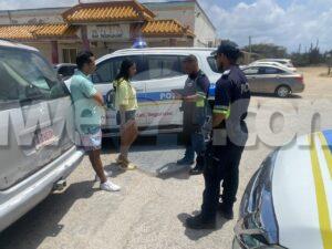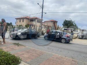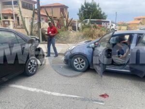 Diadomingo merdia a drenta informe di un accidente cu hende herida na Citgo Paradera y e dama chauffeur cu a causa e accidente kier a bandona e sitio, mesora a dirigi un patruya na e sitio. Net yegando na e sitio e patruya a ser avisa cu e Mercedes Benz suv cu a causa e accidente ta bayendo. Polis a bay su tras y a logra par’e poco mas pabao. Polis a atende e accidente y a compronde cu e dama chauffeur biniendo di Sero Preto a yega subi e crusada sin para y a dal e Toyota Yaris bayendo pariba y e impacto a bira e Yaris 90 grado y e parti patras a bay dal e Kia Rio hatchback bayendo pabao. Debi na e impacto cu e Kia Rio e pasahero dilanti den e Kia Rio a resulta herida. Na yegada di e ambulans a atande e victima na e sitio mes.