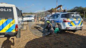 Diamars atardi a drenta informe di cu lo tin hende ta hortando material banda di Indian Rock Garden, mesora a dirigi patruyanan na e sitio. Na yegada di e patruyanan a bin topa cu 3 conocido di polis cual ta conosi pa horta hero bieuw y koper. Polis a detene tur 3 y a bay warda cu nan.