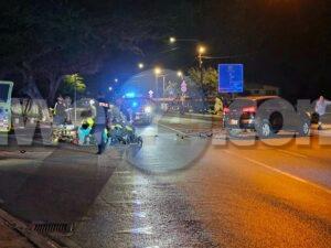 Diasabra madruga a drenta informe di un accidente cu hende herida na e crusada di Shaba pa bay Bubali, mesora a dirigi tanto polis como ambulans na e sitio. Na yegada di e patruya a bin compronde cu aki ta trata di un accidente unda un chauffeur di edad den un Kia Sportage a bay subi caminda pero no a mira e brommer y esaki a bin dal riba dje. E impacto tabata fuerte y e motociclista a resulta herida. Na yegada di e ambulans nan a atende e victima y a transporte pa hospital pa su lessionnan na brasa robes y su cara.