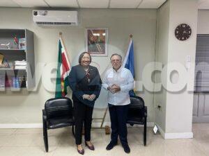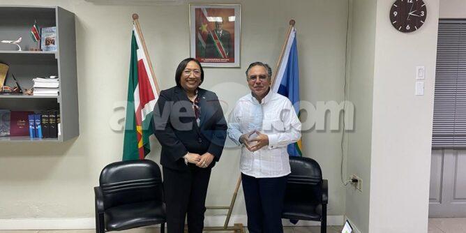 WILLEMSTAD – Riba 8 di mèi último, na kantor di Konsulado di Sürnam na Willemstad a firma un akuerdo di kolaborashon entre Korte Komun di Hustisia i Korte di Hustisia di Sürnam. E firmantenan di e akuerdo aki ta e presidentenan di e Kortenan, i a firma esaki den presensia di e kònsùl-general di Sürnam, señora Zuiverloon, i señor Steg, asesor di maneho di Korte Komun di Hustisia. Presidente di Korte di Sürnam, Mr. Rasoelbaks, tabata presente atraves di un konekshon di vidio digital.