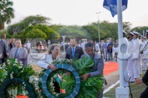 ORANJESTAD: Dia 4 di mei 2023, Minister Endy Croes a atende e ceremonia conmemorativo, Dodenherdenking. Tambe presente na e ocasion aki tabata Su Excelencia Gobernador di Aruba Alfonso Boekhoudt, Prome Minister Evelyn Wever-Croes, Minister Endy Croes, Minister Ursell Arends, Minister Rocco Tjon y Presidente di Parlamento Edgard Vrolijk. Anualmente e paisnan di Reino Hulandes ta considera dos (2) minuut di silencio pa conmemora esnan cu a fayece durante segunda guera mundial. E ceremonia a tuma luga na e herdenking plaat na Adriaan Lacle Blvd, unda Prome Minister Evelyn Wever-Croes hunto cu Minister Endy Croes, Minister Ursell Arends y Minister Rocco Tjon a coloca un krans na honor di esnan cu sacrifica y perde nan bida pa nos durante segunda guera mundial. A pasa 78 aña cu segunda guera mundial a termina y semper nos lo keda recorda e sacrificio di esnan cu buscando paz a perde nan bida pa nos.