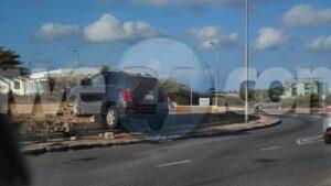Diahuebs mainta tempran a drenta informe di un accidente na e rotonde Sasaki, mesora a dirigi un patruya na e sitio. Na yegada di e patruya a topa cu un Chevrolet Equinox cu a subi e rotonde dal borchi trafico y keda pega polis a nota cu e chauffeur lo ta bao influencia y a bay warda di polis cun’e pa test. Afortunadamente ningun hende a resulta herida.