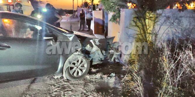 Diahuebs atardi laat a drenta informe di un accidente cu hende herida na Pos Chikito, mesora a dirigi tanto polis como ambulans na e sitio. Na yegada di e patruya a bin compronde cu e chauffeur di e Kia Rio a baha caminda na man drechi y a bay dal fuertemente riba e cura di e cas. Como cu e no tabata tin seatbelt bisti den e impacto ela bay te na e otro banda di e auto y tabata for di tino cu un kap na cabes sangrando profusamente. Na yegada di e ambulans nan a atende e victima y a transporte pa hospital.
