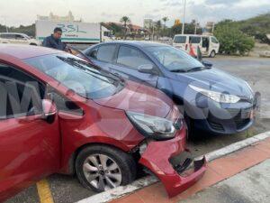 Diasabra madruga a drenta informe di un accidente na e rotonde na Palm Beach, mesora a dirigi un patruya na e sitio. Na yegada di e patruya a bin compronde cu aki ta trata di un accidente unda cu e chauffeur di un Kia Rio coriendo cu velocidad halto riba Sasakiweg bayendo nort cu caminda muha yegando e rotonde Palm Beach no a logra maniobra y a bay man drechi baha caminda dal baranca grandi push’e un bon pida y djey sigui bay dal un Toyota Yaris staciona y casi drenta Wendy’s Palm Beach. Afortunadamente ningun hende a resulta herida pero si 2 auto destrui door di e impactonan.