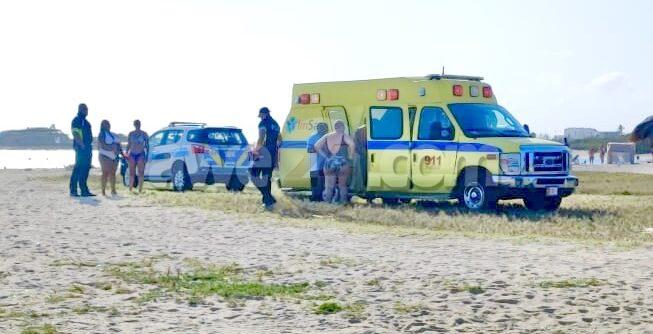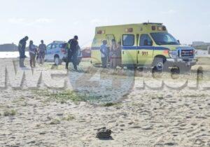 Diasabra atardi a drenta informe di un persona cu problema den lama na Baby Beach, mesora a dirigi tanto polis como ambulans na e sitio. Na yegada di e patruya a bin compronde cu aki ta trata di un homber di edad cu lo a haya problema den lama door di a guli hopi awa. Na yegada di e ambulans nan a atende e victima y a prepar’e pa hib’e hospital pa un revision y control mas extenso.