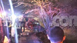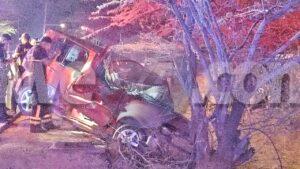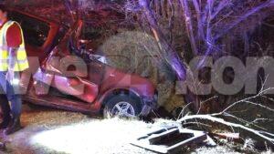 Diadomingo madruga a drenta informe di un accidente cu hende herida y pega den auto na Sabana Liber, mesora a dirigi tanto polis, ambulans como tambe e equipo di rescate di bombero. Na yegada di e patruya a bin compronde cu aki ta trata di un accidente unda cu e chauffeur di un Nissan Cube na e birada di Sabana Liber a topa cu un pick-up memey caminda y a bay desvia p’e y a perde control bay dal riba un mata. E impacto tabata fuerte y e chauffeur a manera keda pega den e auto. Na yegada di e ambulans a cuminsa atende e chauffeur herida y a trata pa saca e victima via e porta patras. Na yegada di e equipo di rescate a yuda pa saca e victima pa asina ambulans transporta e victima pa hospital.