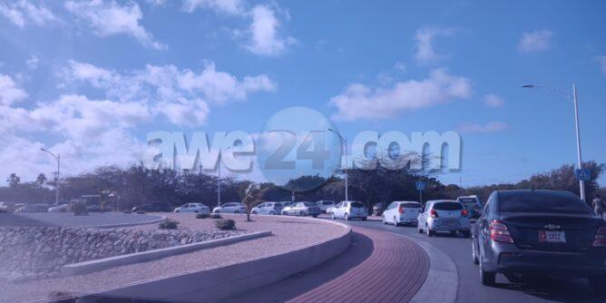 Diadomingo for di oranan di diasabra atardi, anochi, diadomingo madruga y diadomingo mainta nos a ricibi varios reclamo con a sera e turistanan den e area hotelero, e empleadonan di hotelnan y chauffeurnan cu a keda sera y pega den trafico banda di e hotelnan. Hopi ta esnan cu a puntra pakiko no ta haci e evento ey entre e rotondenan di Mahuma cu di Drive-Inn y laganan ked acana/core den circuit mientras e trafico por tuma e caminda bieuw y/of via Santa Cruz. Pero locual no mag sosode ta e stagnacion di trafico manera e fin di siman aki.