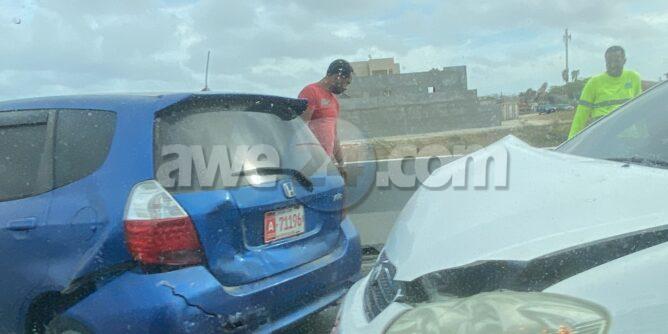 Dialuna mainta a drenta informe di un accidente cu hende herida riba E.J. “Watty” Vos blvd na altura e subida di e brug na Hato, mesora a dirigi tanto polis como ambulans na e sitio. Na yegada di e patruya ya caba ambulans tabata na e sitio atendiendo un victima. Locual a sosode cu e chauffeur di e Toyota Corolla a bay dal tras di e Honda Fit, debi na e impacto un persona a resulta herida y e personal di ambulans a atende y a transporta e victima pa hospital.