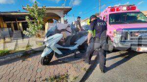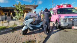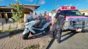 Diaranson mainta a drenta informe di un accidente cu hende herida banda di Mundo Nobo na Santa Cruz, mesora a dirigi tanto polis como ambulans na e sitio. Na yegada di e patruya a bin haya ambulans caba na e sitio y a bin compronde cu aki ta trata di un incidente unda un brommer su so cu so a dal abao. E motociclista tabata tambe cu un mucha como pasahero riba e brommer y ambos a resulta herida. E personal di ambulans a atende e heridonan na e sitio y a transporta ambos levemente herida pa hospital.