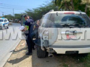 Diasabra mainta a drenta informe di un accidente unda cu un auto lo a bolter na Gasparito, mesora a dirigi un patruya na e sitio. Na yegada di e patruya a bin compronde cu aki ta trata di un accidente unda cu e chauffeur di un Hyundai Getz bayendo zuid cu velocidad halto a tuma e birada muchoi grandi bay dal den banda di un Ford di direccion contrario, perde control y bolter. Afortunadamente ningun hende a resulta herida.