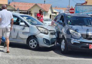 Diaranson atardi a drenta informe di un accidente na e crusada Koningstraat Weststraat, mesora a dirigi patruya na e sitio. Na yegada di e patruya a bin compronde cu aki ta trata di un accidente pa falta di preferencia unda e Kia Picanto biniendo den Koningstraat no a para duna preferencia na e Kia Sportage biniendo fey Weststraat y nan a dal den otro. Afortunadamente ningun hende a resulta herida.