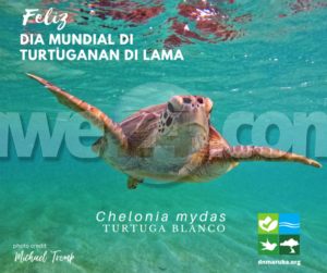 Dia 16 di juni tur aña ta celebra y observa pa Nacionnan Uni e Dia Mundial di Turtuganan di Lama (World Sea Turtle Day). E dia aki ta pa eleva conscientisacion pa cu e situacion dificil cu turtuganan di lama ta encontra cune y pa promove esfuersonan di conservacion. E pregunta cu Directie Natuur en Milieu (DNM) ta trece dilanti ta, cualnan ta e mensanan mas grandi mundialmente y na Aruba pa cu e sortonan protegi aki? Tur e 7 sortonan di turtuganan di lama ta riba lista di proteccion (Endangered Species Act) mundialmente, pero nan ta den peliger di extincion of nan existencia ta menasa pa actonan humano of condicionnan natural causa pa humanidad.