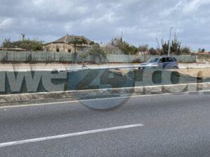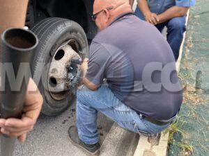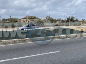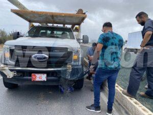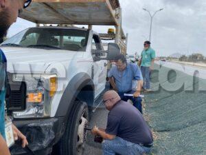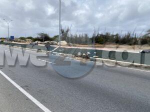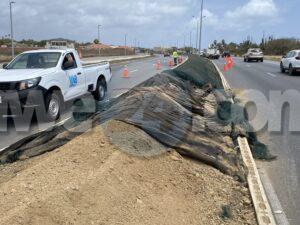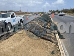 Diabierna mainta a drenta informe di un accidente riba E.J.”Watty” Vos blvd. entre Tanki Leendert pa Ponton, mesora a dirigi un patruya na e sitio. Na yegada di e patruya a bin compronde cu aki ta trata di un accidente unda e tire di un truck grandi di Elmar a rementa y e truck a subi e median ranca 2 palo di lus fuera ranca e tapijt di yerba artificial. Afortunadamente ningun hende a resulta herida y Elmar a keda di cubri e gastonan envolvi.