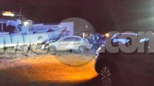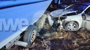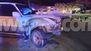 Diasabra madruga a drenta informe di un accidente basta pisa cu hende herida na Rooi Santo, mesora a dirigi tanto polis como ambulans na e sitio. Na yegada di e patruya a bin compronde cu aki ta trata di un accidente unda un pareha hulandes europeo a baha caminda na man robes y dal na e acera, bay dal riba un suv, bira 90° e parti patras di e auto dal un trailer pusha esaki despues bolbe bira 90° lagando basta daño atras. Debi na e impactonan aki e dama hulandes europeo a resulta herida. Na yegada di e ambulans nan a atende e dama y a transporte pa hospital, mientras e caballero hulandes europeo no a resulta herida y a ser hiba cu polis na hospital. Ningun di 2 ta corda kiko a pasa cu nan a accidenta.