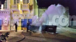 Diaranson madruga un security a yama bisa cu e ta mira cu tin un candela banda di museo patras di Kong Hing Supermarket, mesora a dirigi tanto polis como bomberonan na e sitio. Na yegada di e patruya a bin constata cu aki ta trata di un baki sushi cu ta na candela, na yegada di bomberonan mesora a paga e candela cu tabata forma peliger da e edificio den cercania. Polis tabata tin un anochi fastioso cu e comportacion di e adictonan ambulante na Oranjestad.